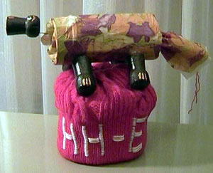 das Ursprünglich war es ein angefangener Pulli aus pinkfarbenem Synthetikgarn.