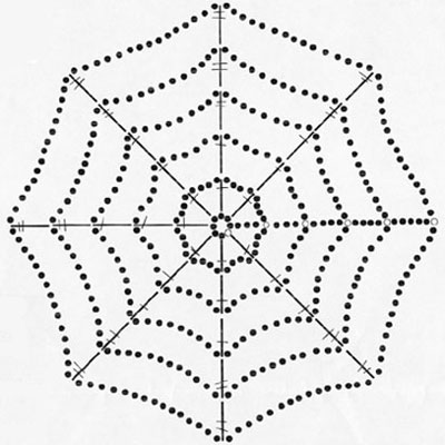 stecken. Nun immer diagonal, von der Mitte ausgehend eine in jedes Stb.